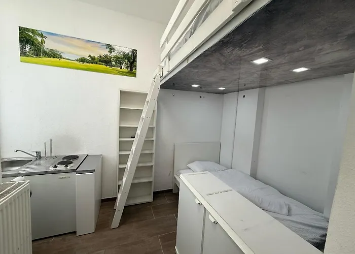 El apartamento incluye una pequeña cocina. El restaurante Pizzeria Buongiorno ofrece comida italiana y se encuentra a aproximadamente 5 minutos a pie. Está cerca de la estación de autobuses Bleichstrasse.